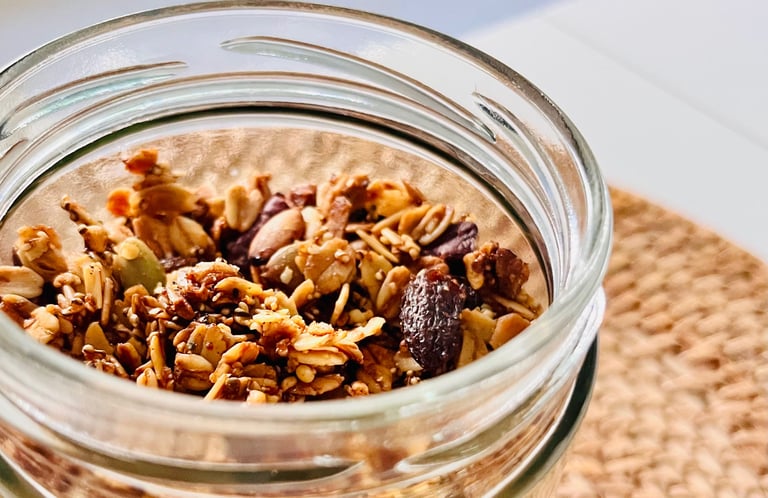 This granola is to die for! So nutty, crunchy, satisfying and rich of different seeds, grains and nuts for a whole array of nutrients.